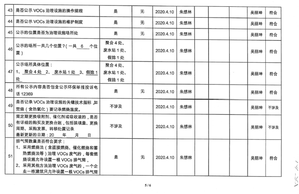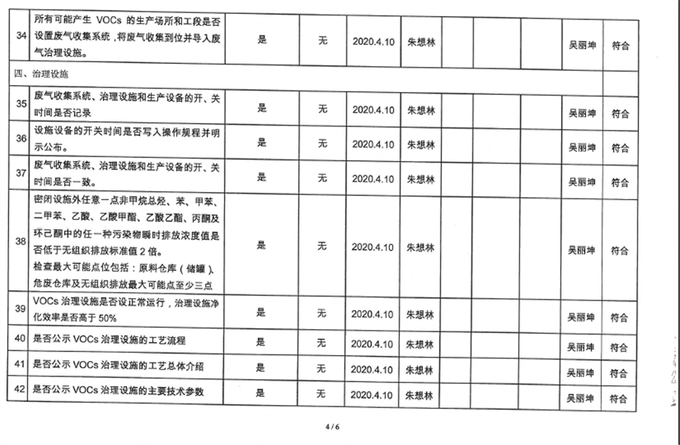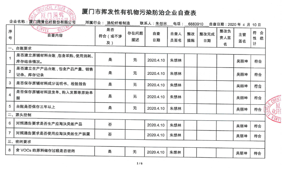 廈門市揮發性有機物污染防治企業自查表(2020年第一季度)