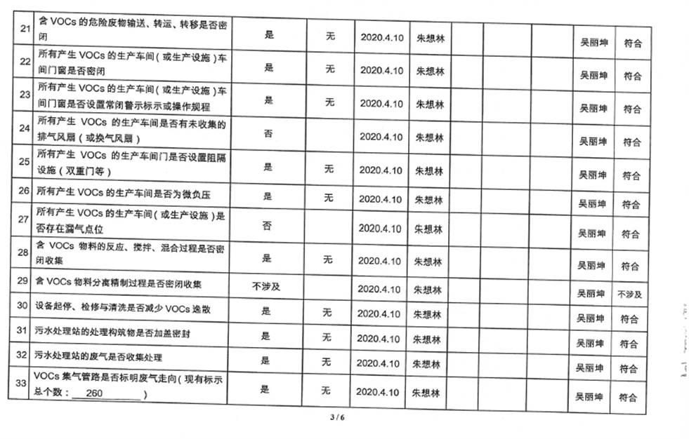 廈門市揮發性有機物污染防治企業自查表 (2020年 第三季度)
