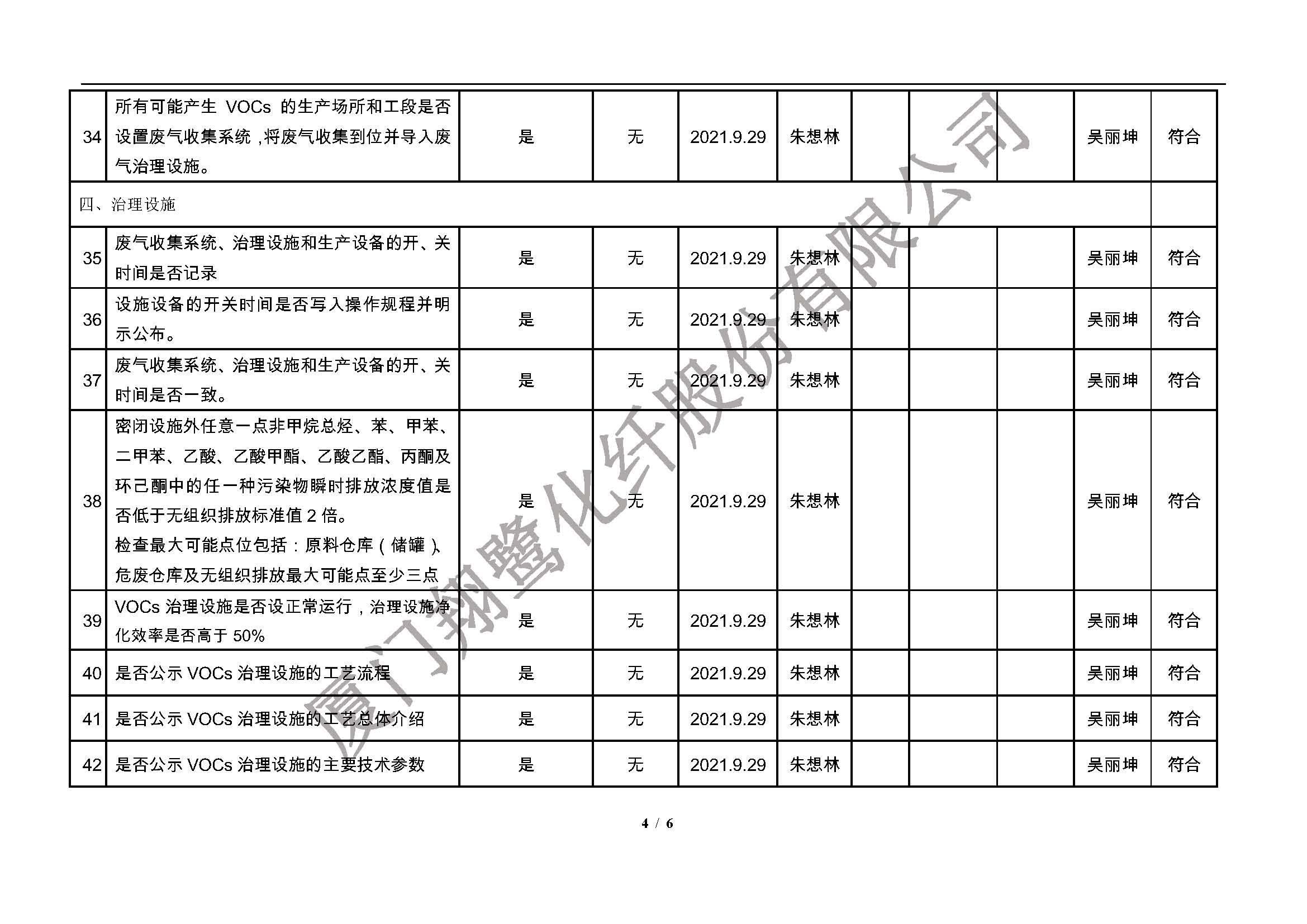 廈門市揮發性有機物污染防治企業自查表 (2021年 第四季度)