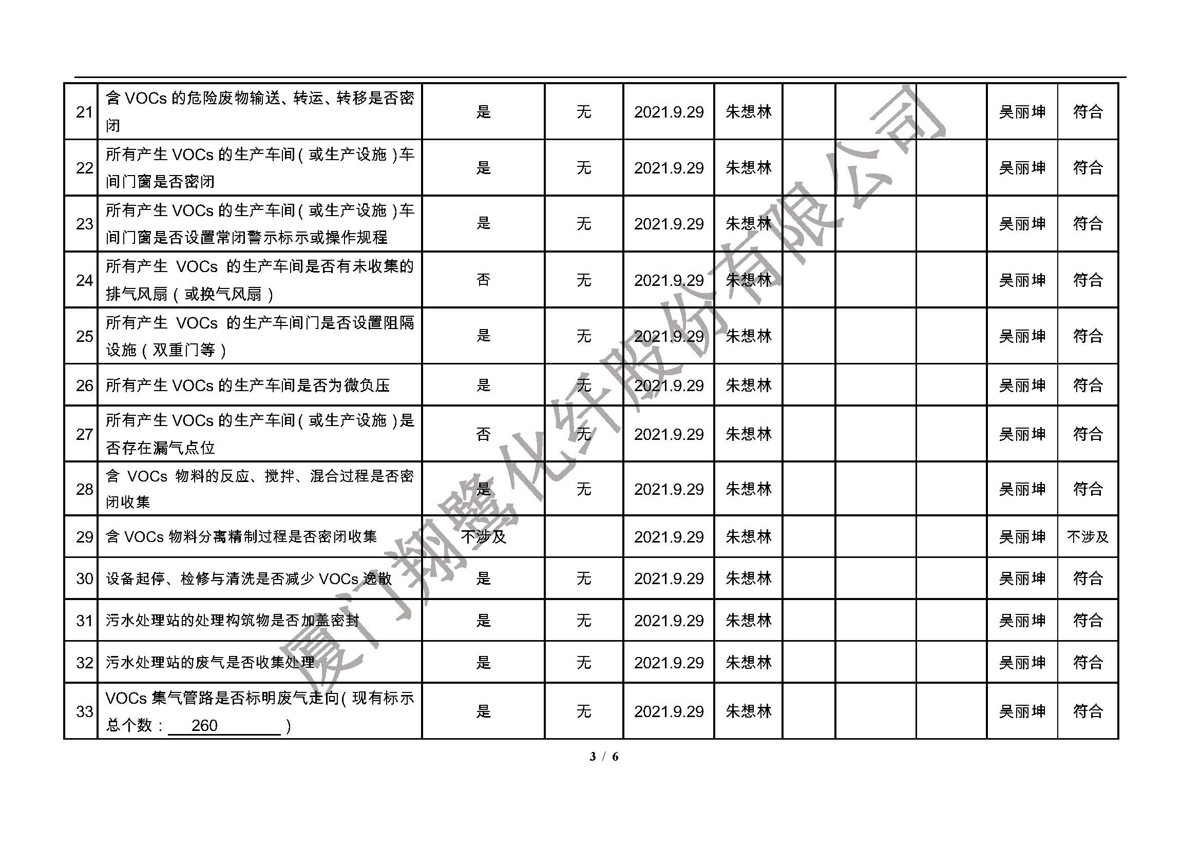 廈門市揮發性有機物污染防治企業自查表(2021年 第二季度)